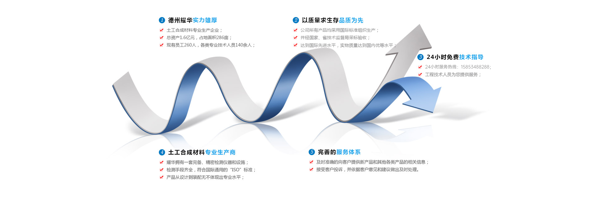 德州耀華土工材料有限公司是目前全國較大、品種其全的土工合成材料專業生產企業,主要產品有復合土工膜、HDPE土工膜、長絲土工布、防草布、防水土工布、水庫防滲膜、防水板、生態袋、三維復合排水網、長絲機織土工布、EVA土工膜、無紡布、6.2m寬幅短纖針刺無紡布、6.0m寬幅土工膜、復合防水板、6.0m幅寬長絲土布等。本公司有年產萬噸滌(丙)短纖維兩用生產線、無紡布、PE防水板、復合膜等10余條生產線,工藝技術先進。HDPE土工膜、復合土工膜價格低廉...【更多】